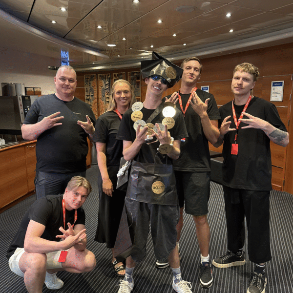 Viking Line’ile naastes ootas meid lõbus tagasisõit Tallinnasse. Üheskoos vaatasime läbi fotojahi parimad kaadrid, meenutades päeva kõige naljakamaid ja eredamaid hetki – kõhulihaseid said korralikult treenitud Taiga videosid vaadates. Seejärel suundusime karaokesaali, kus La Pere tõestas koos päevajuhi Lauraga, et lisaks reklaamimaailma loovusele on meis ka tugevaid muusikalisi andeid. Õhtu lõppes Suveterrassil kokteile nautides – ideaalne punkt täiuslikule päevale.